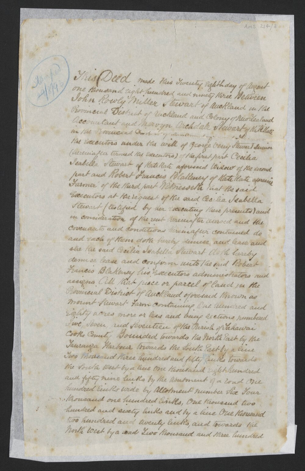 Deed regarding the will of George Vessey Stewart Jnr, 28 Aug 1893 (28 August 1893). Pae Korokī, accessed 24/04/2026, https://paekoroki.tauranga.govt.nz/nodes/view/101482