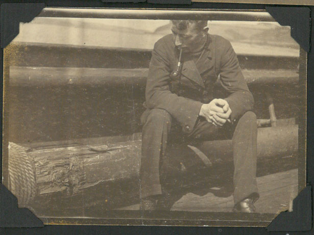DescriptionPhotograph of WWI Naval Officer and Victoria Cross winner W.E Sanders examining damage aboard a Qship. A photo within an album of NZ Captain (wartime Lieutenant) A.D. Blair, Sanders first commanding officer aboard Q17. Looking at the way Sanders' jacket folds it appears this photo was printed in reverse. Although this photo is sometimes considered to be taken aboard the Qship "Prize", it is definately set within this album amongst several photos of damage aboard the Helgoland, or Q17.