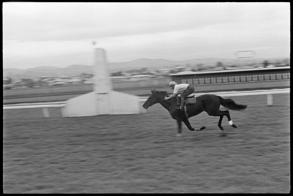 Date1 April 1971Reference Numberphoto gcc-16875DescriptionRacehorse Kirrama (R. B. Marsh) training at the Tauranga race track. Published 1 April 1971.Physical Description35mm black-and-white negative (3/3)Photographer/CreatorBay of Plenty Times
