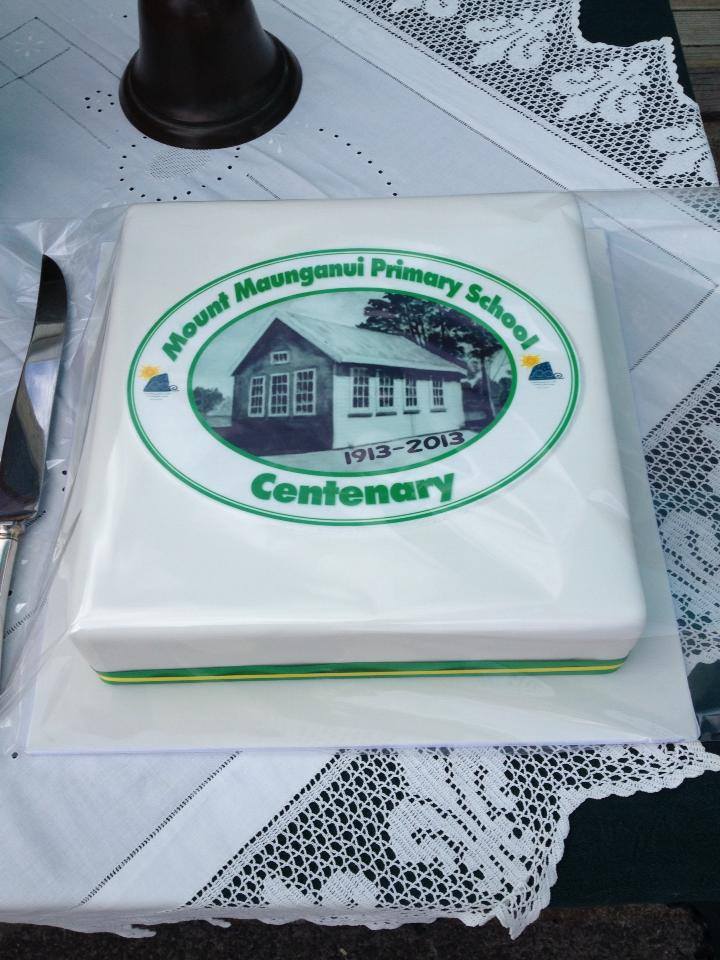 Photograph of the Mount Maunganui Primary School Centenary celebration cake made in 2013.