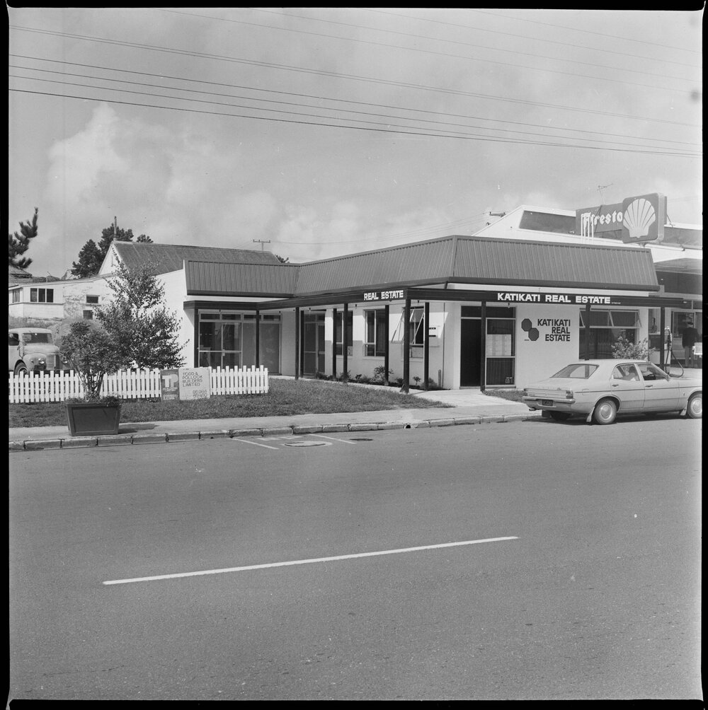 Katikati Real Estate's offices from the road. (March 1979). Pae Korokī, accessed 01/05/2026, https://paekoroki.tauranga.govt.nz/nodes/view/104783