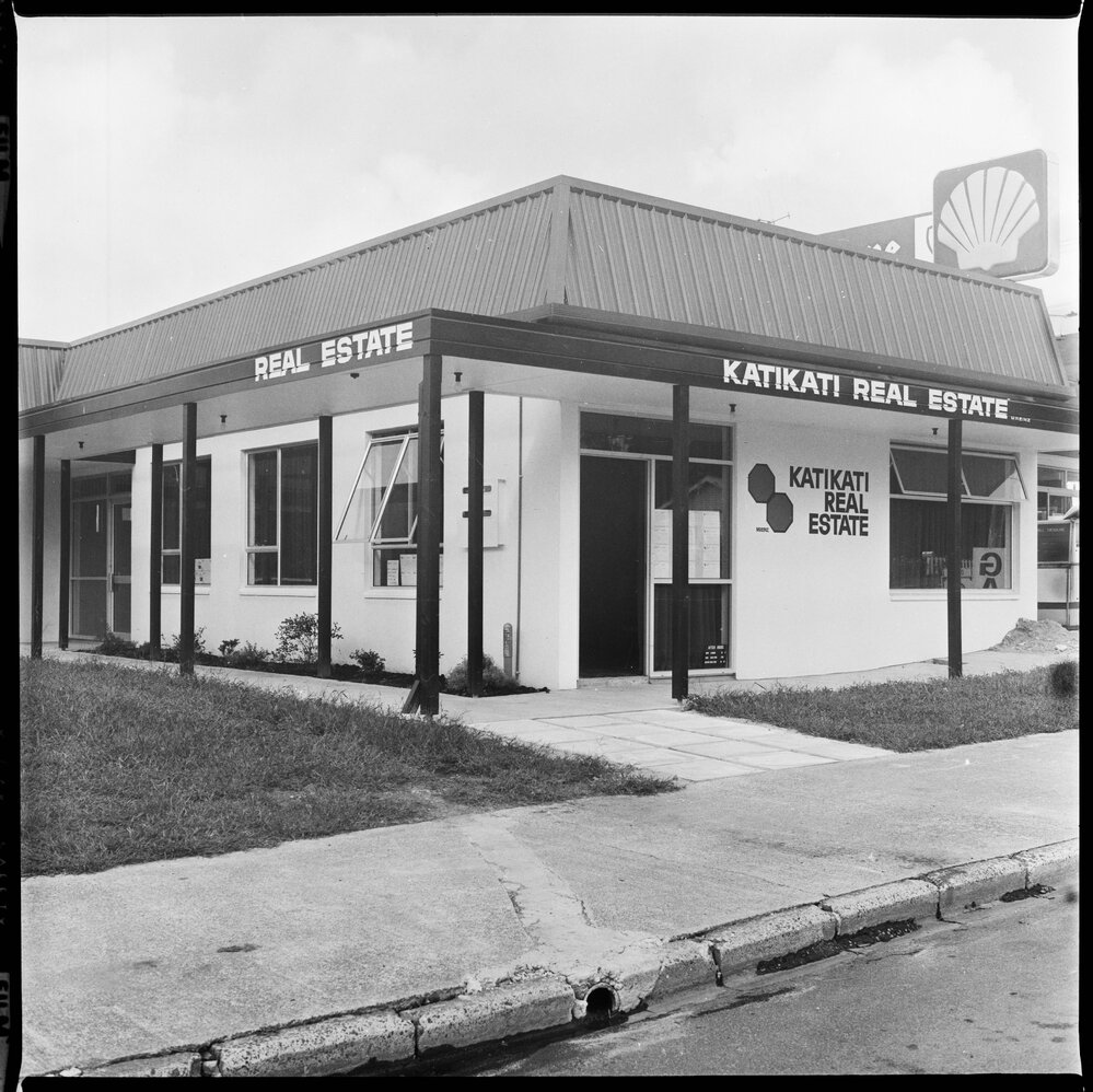 Katikati Real Estate's offices from the road. (March 1979). Pae Korokī, accessed 16/04/2026, https://paekoroki.tauranga.govt.nz/nodes/view/104784