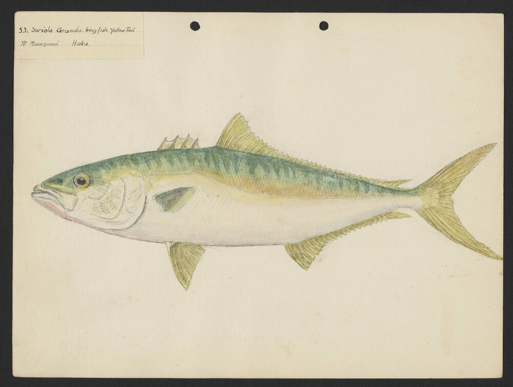 Watson, Arnold Henfrey, 1882-1960, Seriola Grandis, King Fish, Yellow Tail (1930-1959). Pae Korokī, accessed 25/03/2026, https://paekoroki.tauranga.govt.nz/nodes/view/107829