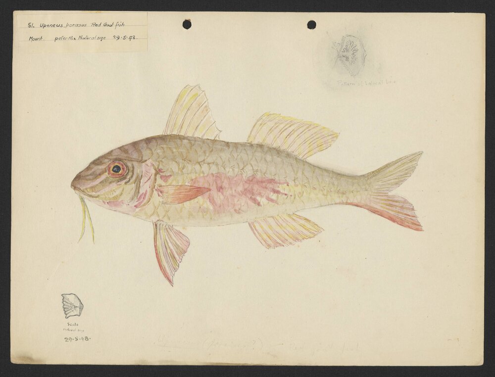 Watson, Arnold Henfrey, 1882-1960, Upeneus porasus, Red Goat Fish (29 May 1948). Pae Korokī, accessed 25/03/2026, https://paekoroki.tauranga.govt.nz/nodes/view/107831