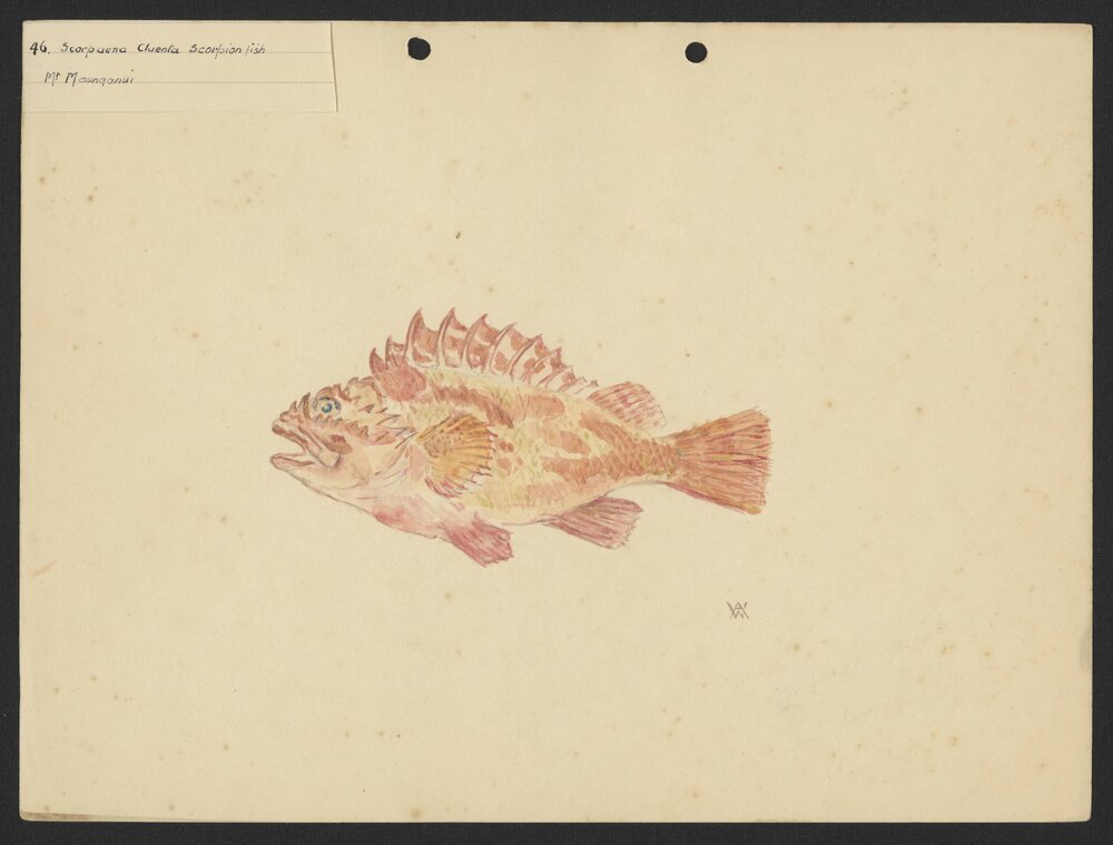Watson, Arnold Henfrey, 1882-1960, Scorpaena cluenta, Scorpion fish (1930-1959). Pae Korokī, accessed 25/03/2026, https://paekoroki.tauranga.govt.nz/nodes/view/107836