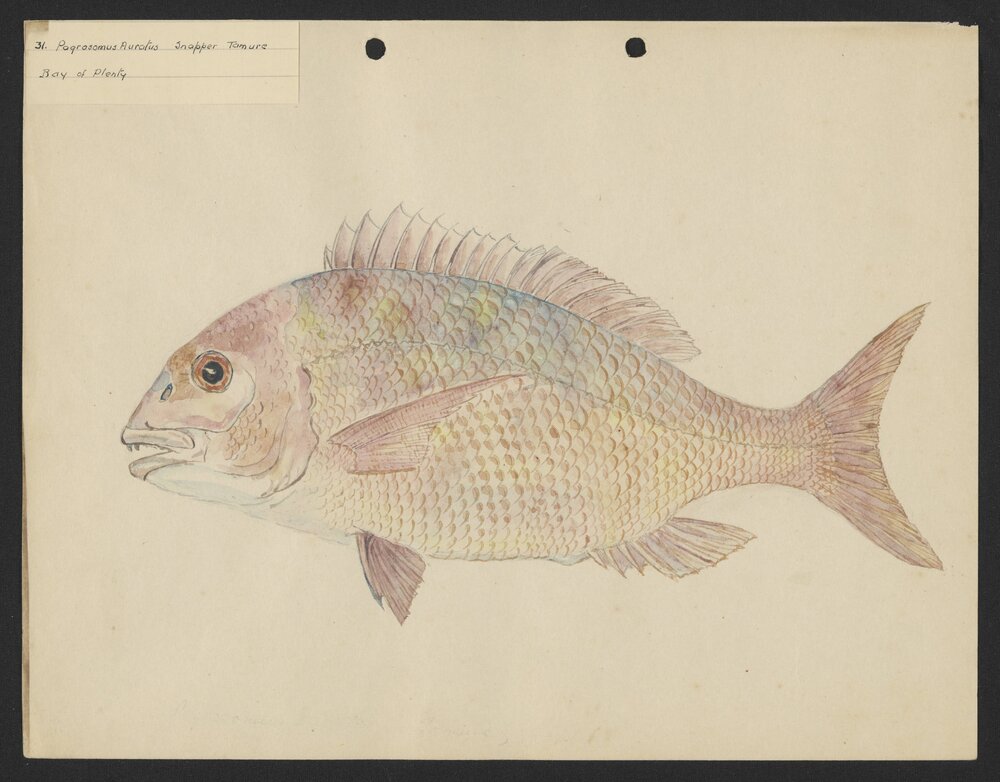 Watson, Arnold Henfrey, 1882-1960, Pagrosomus auratus, Snapper, Tamure (1930-1959). Pae Korokī, accessed 25/03/2026, https://paekoroki.tauranga.govt.nz/nodes/view/107851