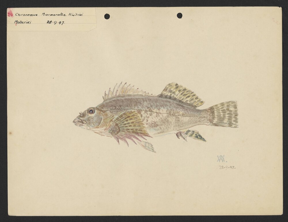 Watson, Arnold Henfrey, 1882-1960, Chironemus Marmoratus. Hiwihiwi (28 September 1947). Pae Korokī, accessed 25/03/2026, https://paekoroki.tauranga.govt.nz/nodes/view/107856