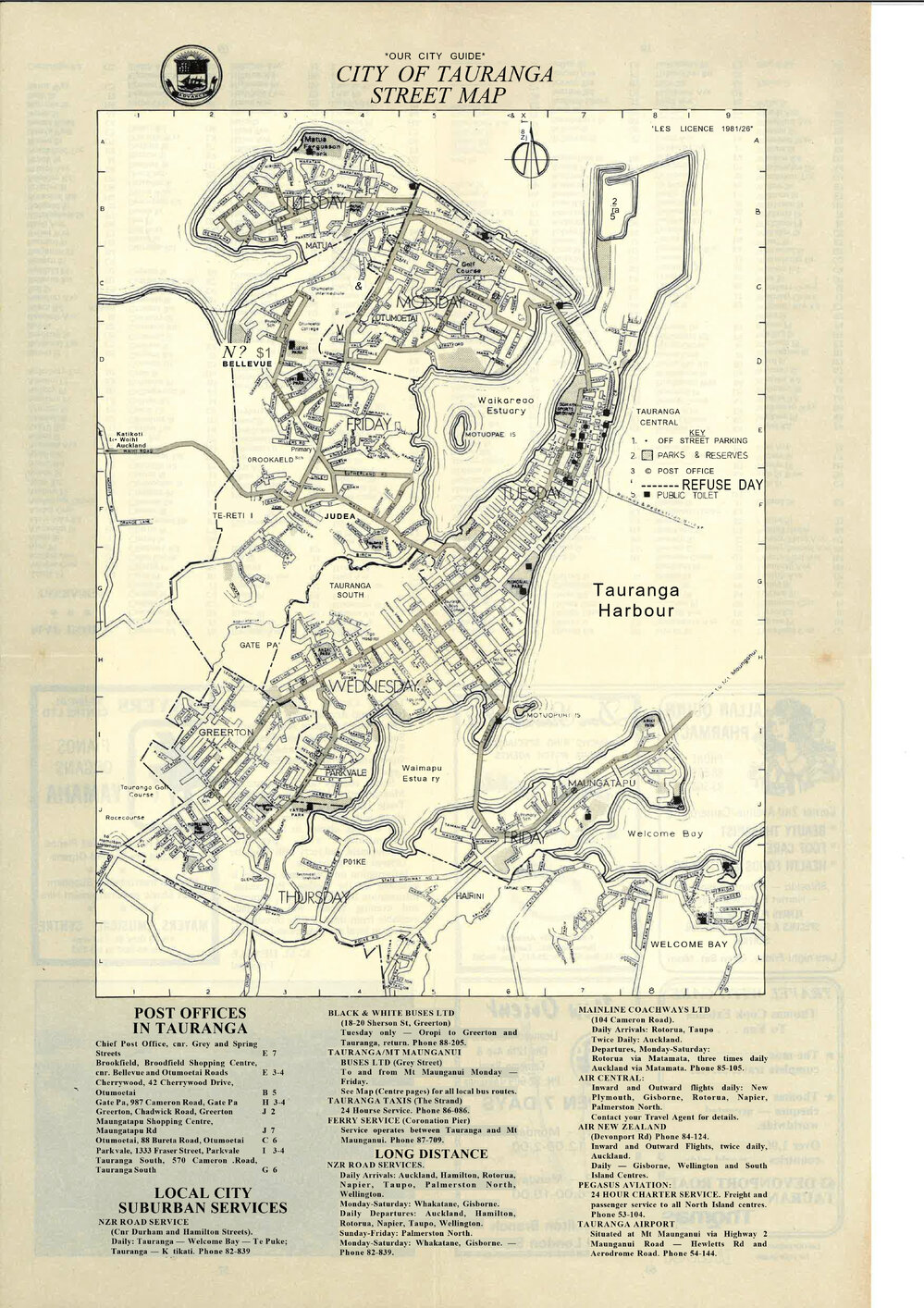 City of Tauranga Street Map "Our City Guide" (c. 1980s). Pae Korokī, accessed 05/04/2026, https://paekoroki.tauranga.govt.nz/nodes/view/107952