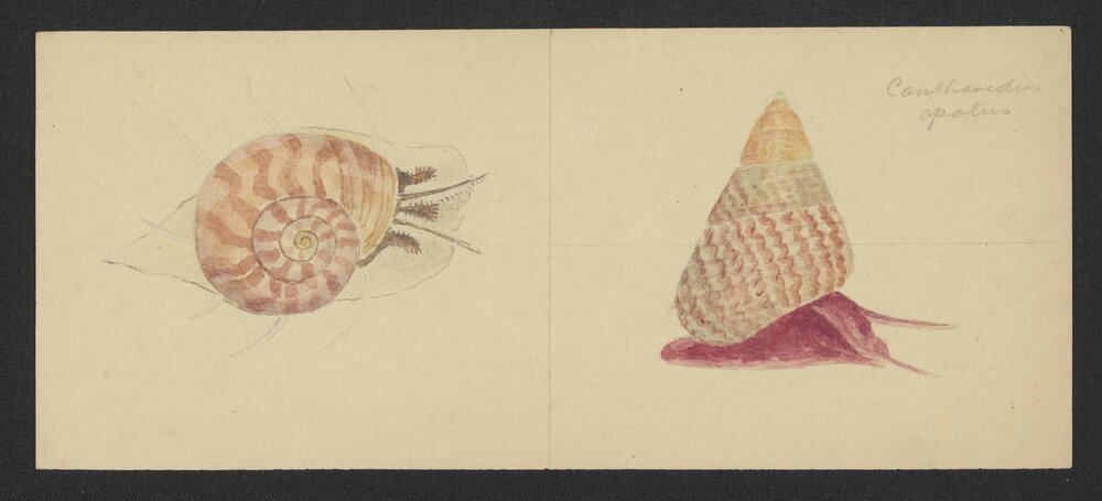 Watson, Arnold Henfrey, 1882-1960, Unidentified marine snail and Cantharidus opulus marine snail (1930-1959). Pae Korokī, accessed 25/03/2026, https://paekoroki.tauranga.govt.nz/nodes/view/108026