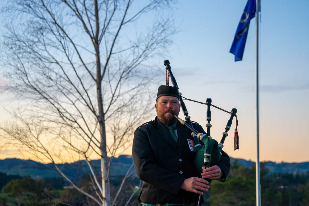 Piper Andrew Graham at the 160th Commemoration of the Battle of Te Ranga