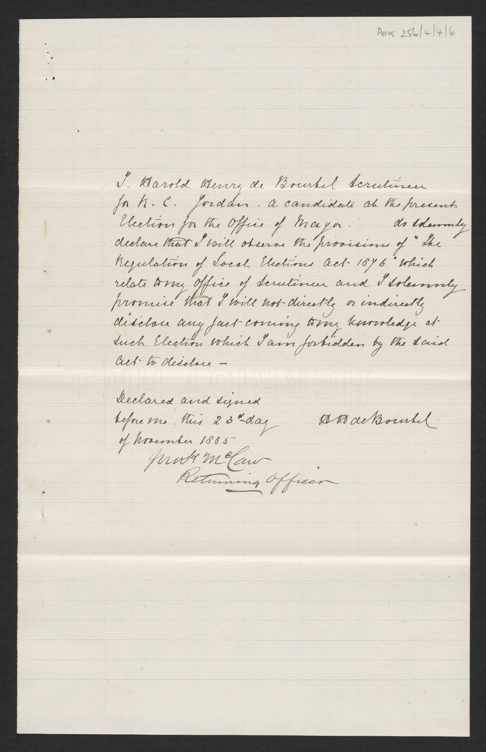 Declaration of scrutineers, Nov 1885 (23-25 November 1885). Pae Korokī, accessed 02/04/2026, https://paekoroki.tauranga.govt.nz/nodes/view/108195