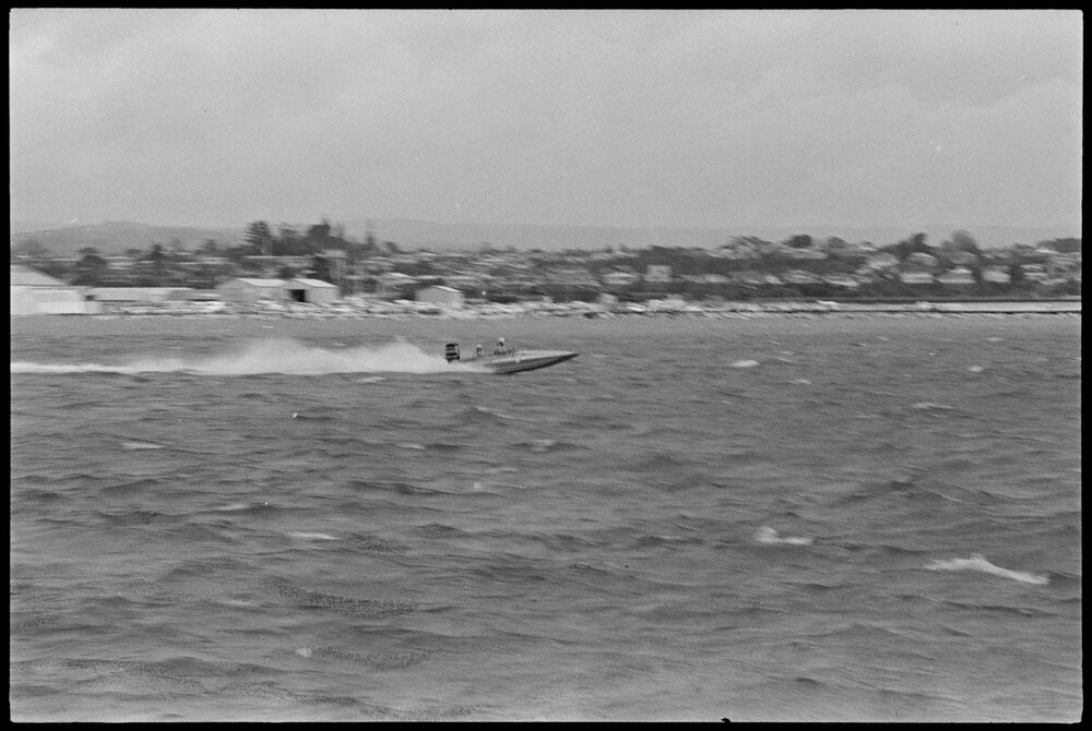Date9 October 1971Reference Numberphoto gcc-19002DescriptionThe BP Power Boat racing in Tauranga Harbour. Published 9 October 1971.FormatNegativePhysical Description35mm black-and-white negative (2/3)Photographer/CreatorBay of Plenty Times