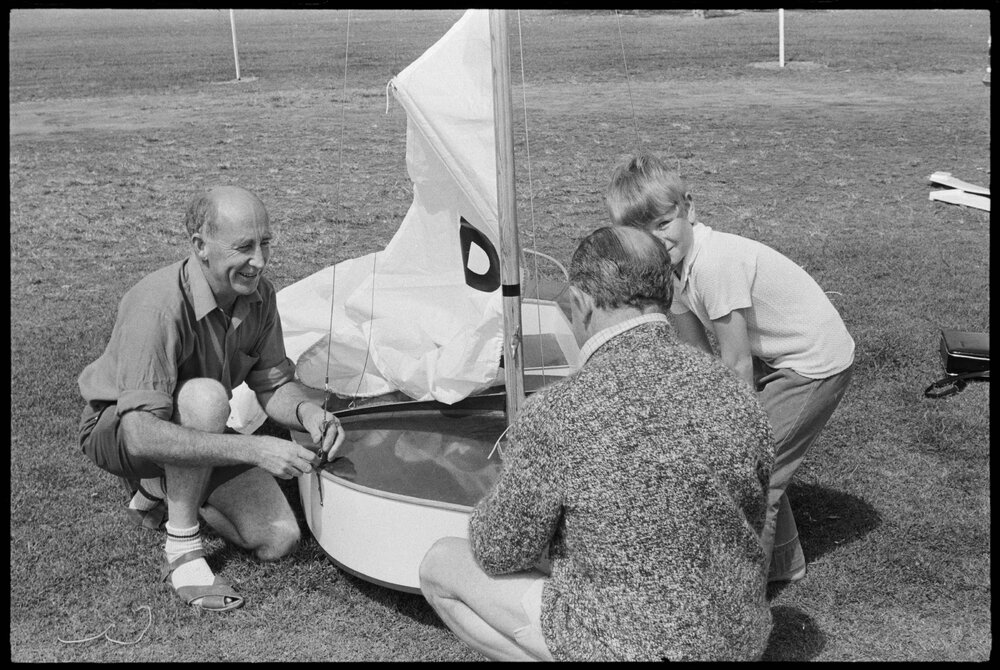 Date16 October 1971Reference Numberphoto gcc-19058DescriptionWayne Woods and his P class yacht Cilla get assistance with the rigging from Mr Dooley-Wilson (left) and Doug Lloyd. Published 16 October 1971.FormatNegativePhysical Description35mm black-and-white negative (1/3)Photographer/CreatorBay of Plenty Times