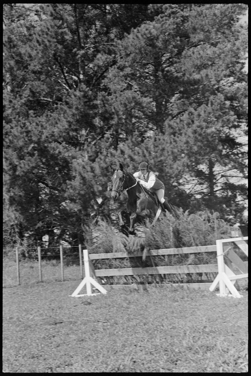 Date18 October 1971Reference Numberphoto gcc-19073DescriptionJane Francis of the Ōtūmoetai Pony Club and her horse, Maestosa, at the Mount Maunganui Pony Club's gymkhana. Published 18 October 1971.FormatNegativePhysical Description35mm black-and-white negative (1/3)Photographer/CreatorBay of Plenty Times