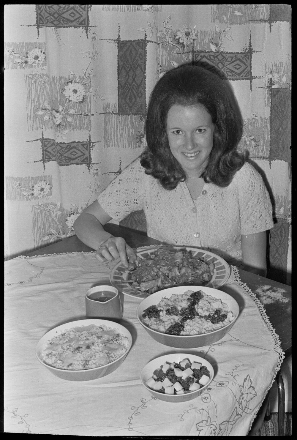 Date20 October 1971Reference Numberphoto gcc-19094DescriptionMrs Carol Hill frying onions for Pork Chow Mein for the What's Cooking feature in the newspaper. Published 20 October 1971.FormatNegativePhysical Description35mm black-and-white negative (1/12)Photographer/CreatorBay of Plenty Times