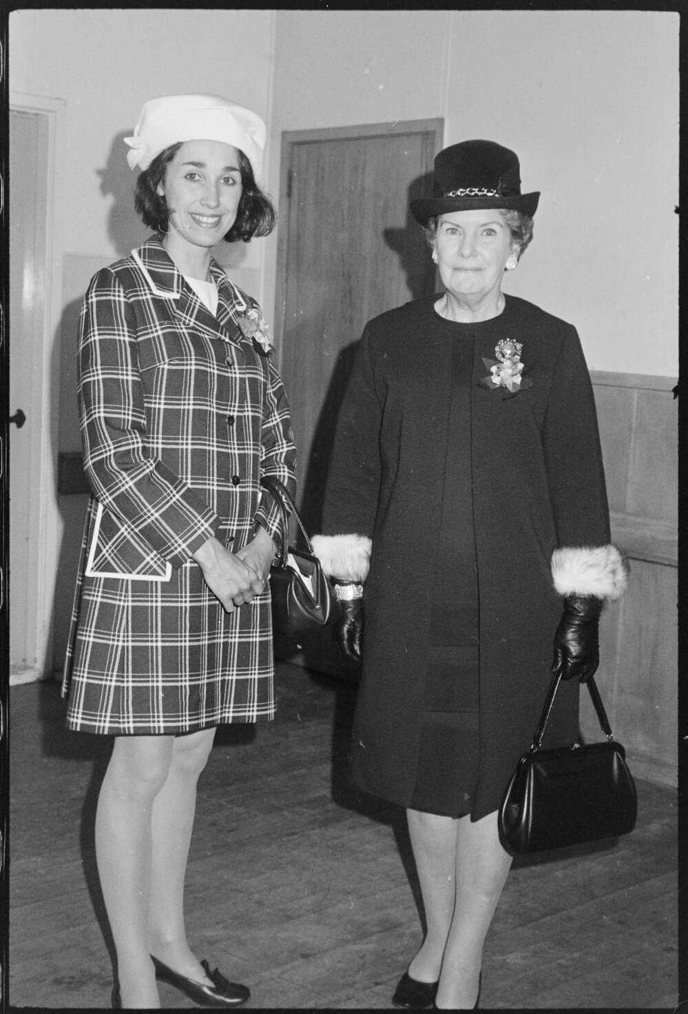 Date22 October 1971Reference Numberphoto gcc-19137DescriptionWaihī Plunket Society function with Mrs New Zealand, Mrs Alison Henry (left) and Mrs A. J. Dean, the Mayoress of Waihī. Published 22 October 1971.FormatNegativePhysical Description35mm black-and-white negative (5/6)Photographer/CreatorBay of Plenty Times