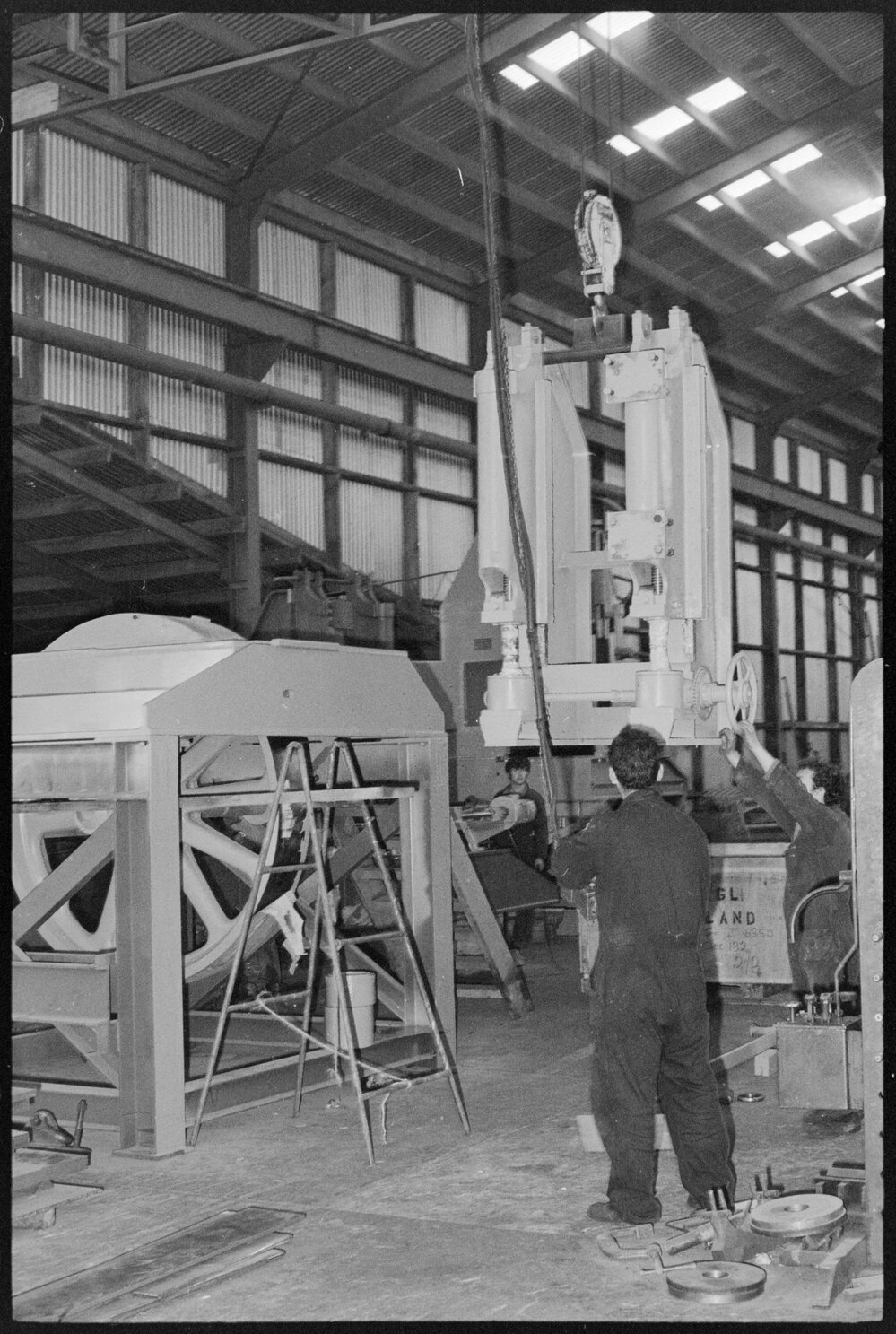 Date23 October 1971Reference Numberphoto gcc-19179DescriptionA 72-inch diameter Albany head rig bandsaw machine being dismantled for exporting to Melbourne, under the control of Mr J. Neale. Published 23 October 1971.FormatNegativePhysical Description35mm black-and-white negative (1/3)Photographer/CreatorBay of Plenty Times
