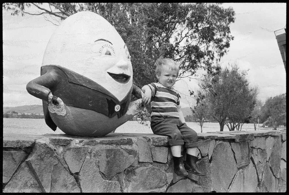 Dean Mitchell sitting with Humpty Dumpty (26 October 1971). Pae Korokī, accessed 10/04/2026, https://paekoroki.tauranga.govt.nz/nodes/view/108311