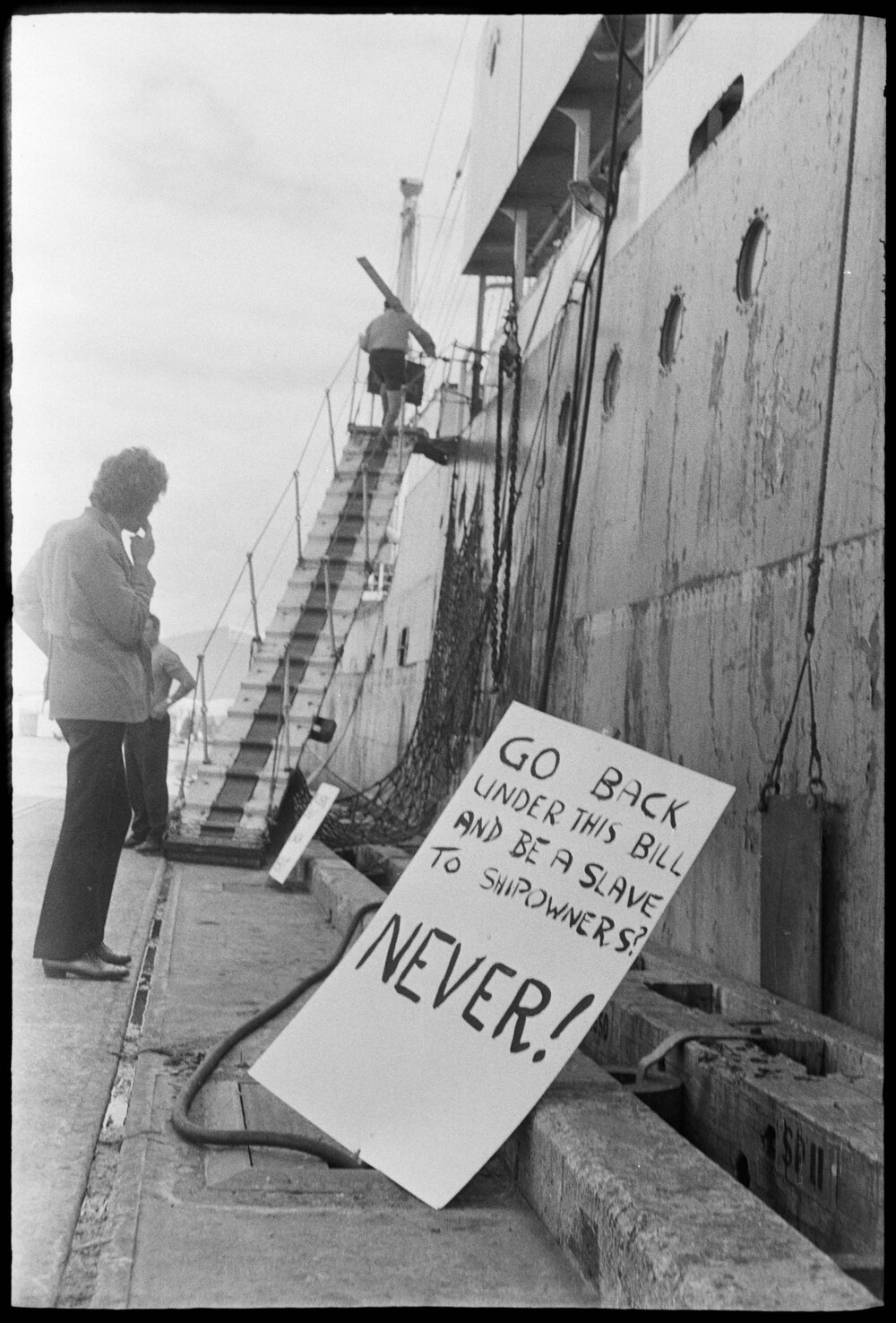 Date10 November 1971Reference Numberphoto gcc-19214DescriptionUnion line ships were picketed at Mount Maunganui port by striking seamen. Published 10 November 1971.FormatNegativePhysical Description35mm black-and-white negative (1/3)Photographer/CreatorBay of Plenty Times