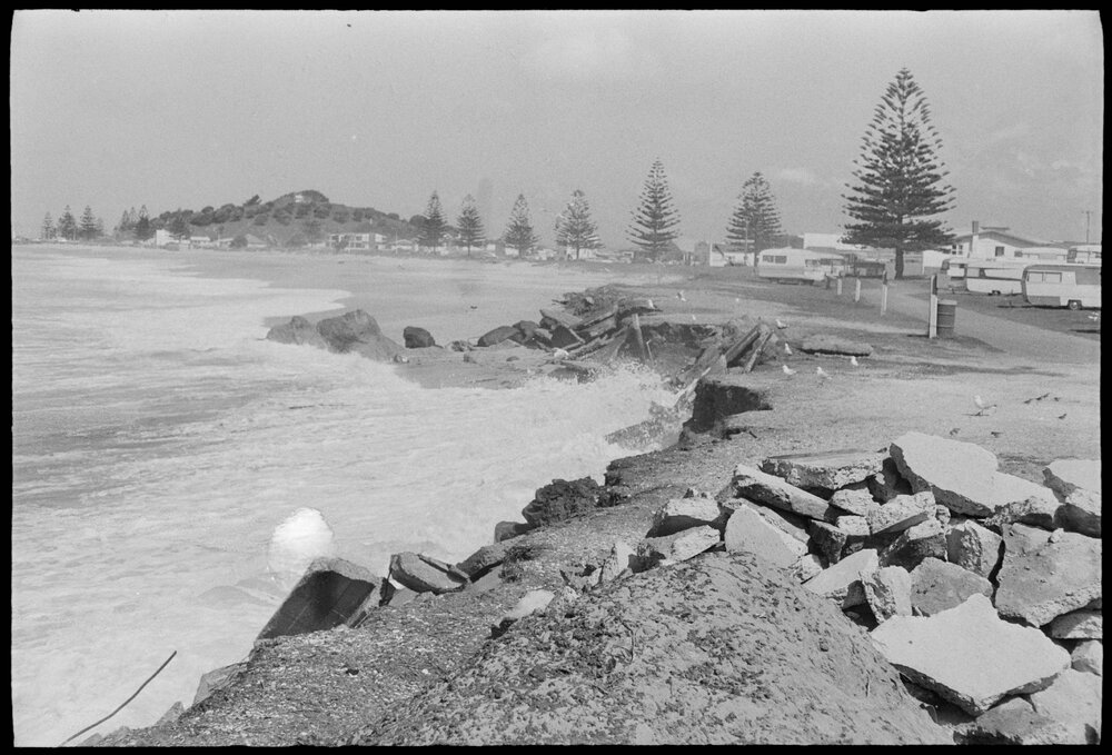Date12 November 1971Reference Numberphoto gcc-19235DescriptionLarge waves buffeted the Mount Maunganui shore and continued erosion is having an impact on the Mount Maunganui Domain Motor Camp. Published 12 November 1971.FormatNegativePhysical Description35mm black-and-white negative (1/3)Photographer/CreatorBay of Plenty Times