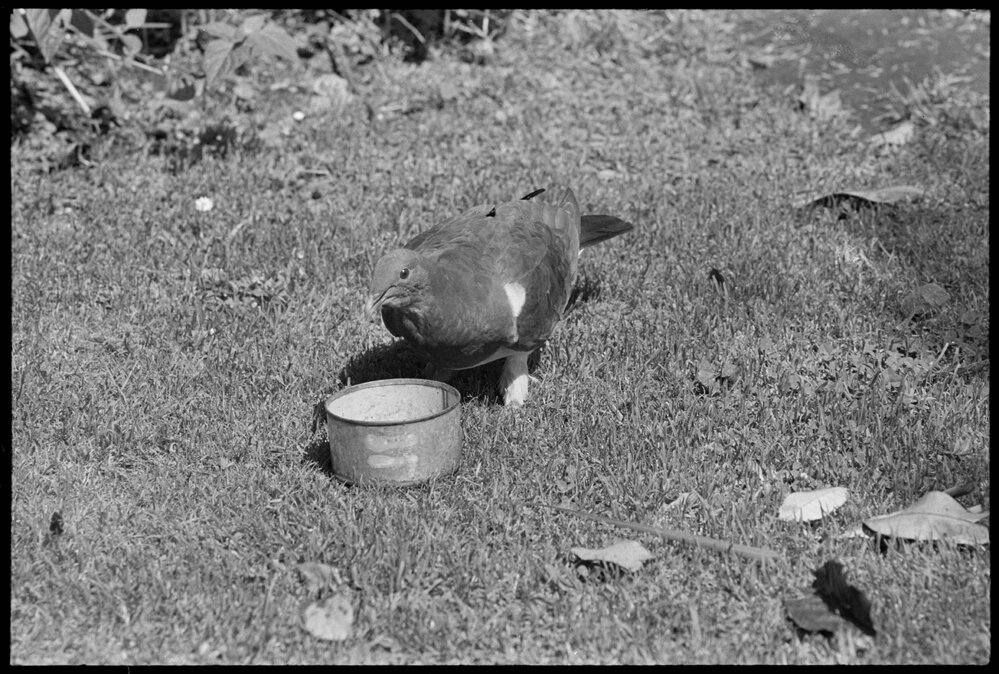 Date18 November 1971Reference Numberphoto gcc-19252DescriptionWild wood pigeon feeding at the 'menagerie' of SPCA Inspector, Mr D. G. Smith. Published 18 November 1971.FormatNegativePhysical Description35mm black-and-white negativePhotographer/CreatorBay of Plenty Times