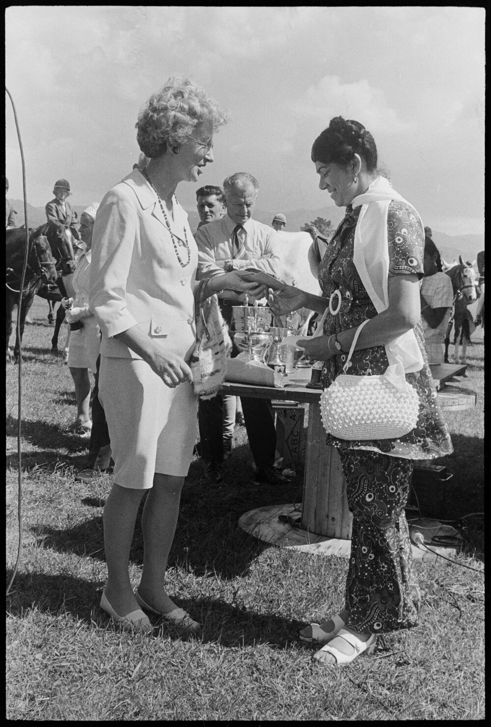 Date18 November 1971Reference Numberphoto gcc-19255DescriptionBest dressed woman attending the Waihī A&P Show is Mrs Singh, pictured here with former Mayoress, Mrs Thomas. Published 18 November 1971.FormatNegativePhysical Description35mm black-and-white negative (1/3)Photographer/CreatorBay of Plenty Times