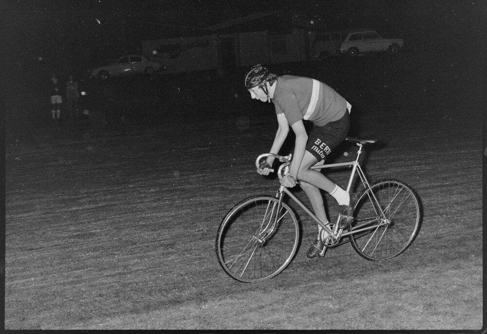 Date19 November 1971Reference Numberphoto gcc-19274DescriptionCycling at the Bay of Plenty invitation club's athletic meeting. Published 19 November 1971.FormatNegativePhysical Description35mm black-and-white negative (6/7)Photographer/CreatorBay of Plenty Times