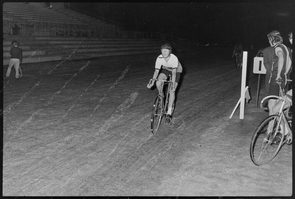 Date19 November 1971Reference Numberphoto gcc-19275DescriptionCycling at the Bay of Plenty invitation club's athletic meeting. Published 19 November 1971.FormatNegativePhysical Description35mm black-and-white negative (7/7)Photographer/CreatorBay of Plenty Times