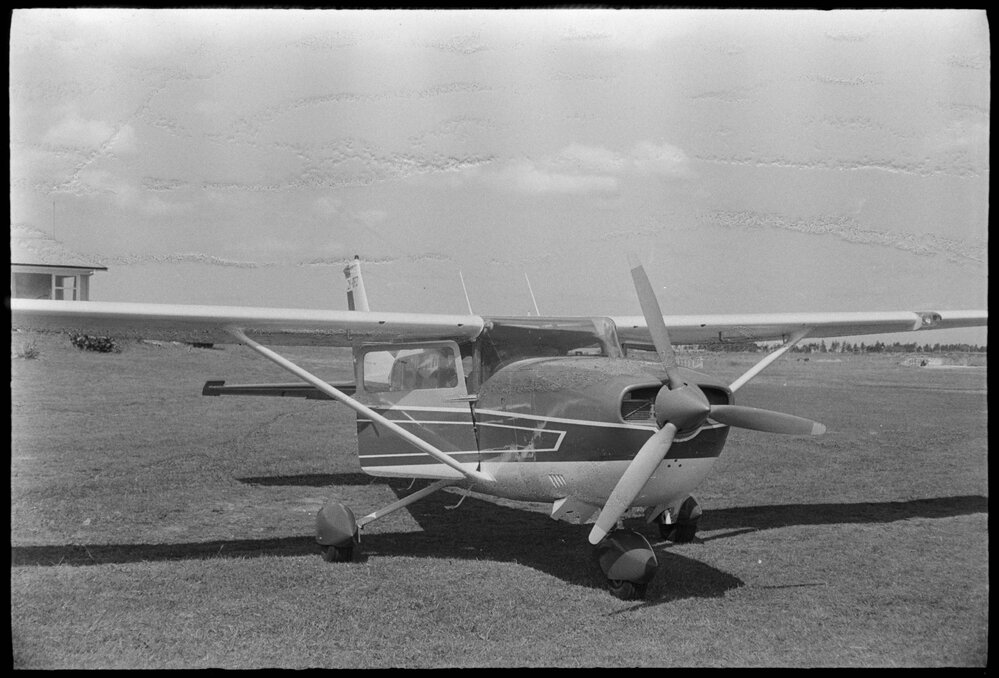 Date25 November 1971Reference Numberphoto gcc-19361DescriptionSmall aircraft on airfield. Published 25 November 1971.FormatNegativePhysical Description35mm black-and-white negative (1/3)Photographer/CreatorBay of Plenty Times