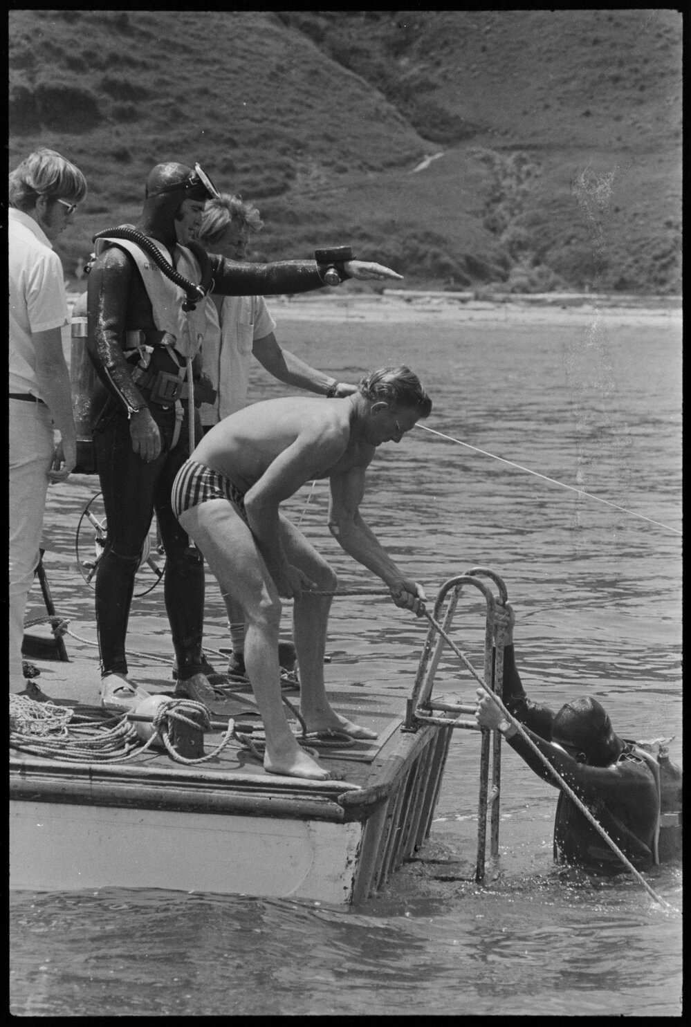 Diver emerges at the stern of "Reo" (27 November 1971). Pae Korokī, accessed 10/04/2026, https://paekoroki.tauranga.govt.nz/nodes/view/108413