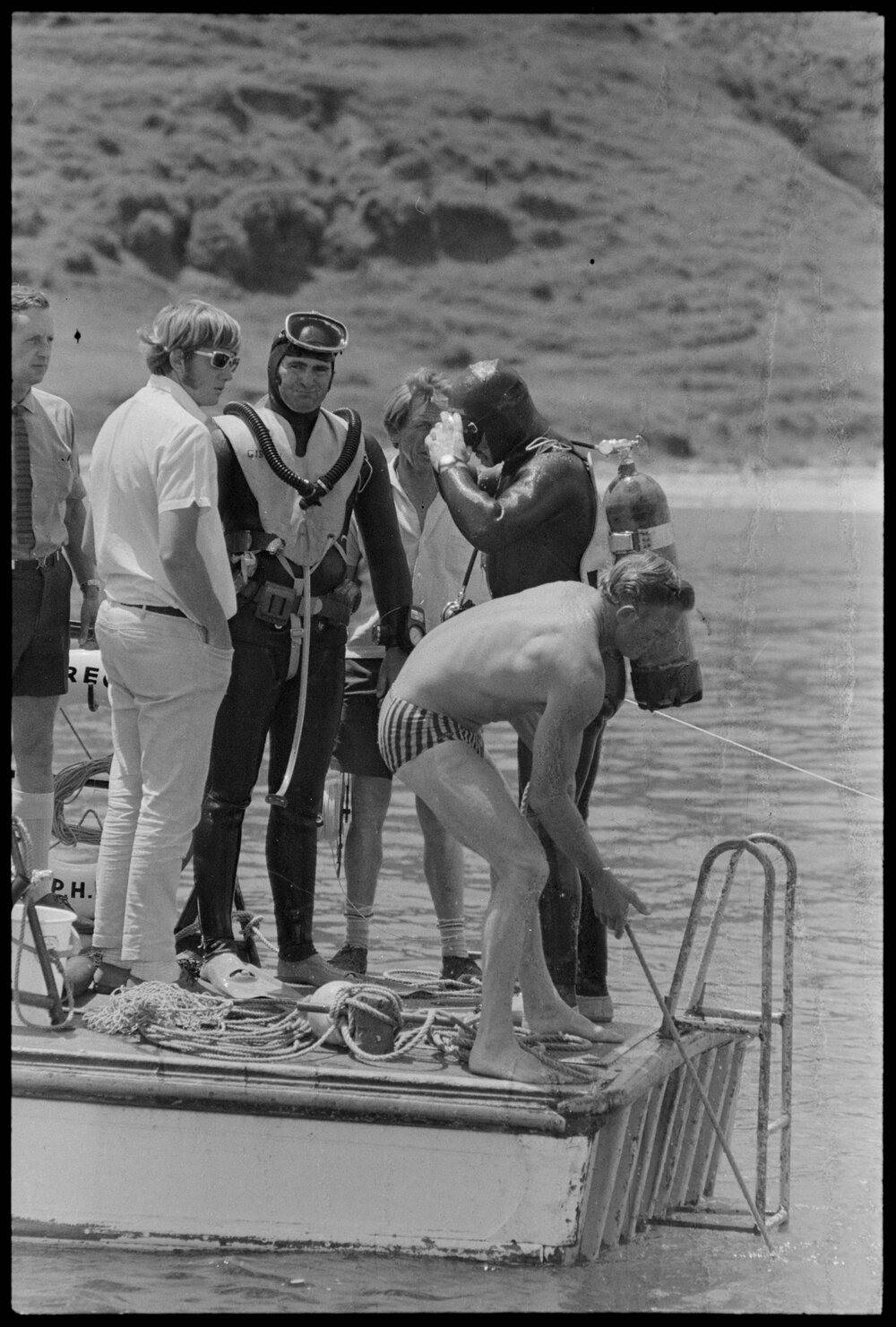 Diver emerges at the stern of "Reo" (27 November 1971). Pae Korokī, accessed 10/04/2026, https://paekoroki.tauranga.govt.nz/nodes/view/108414