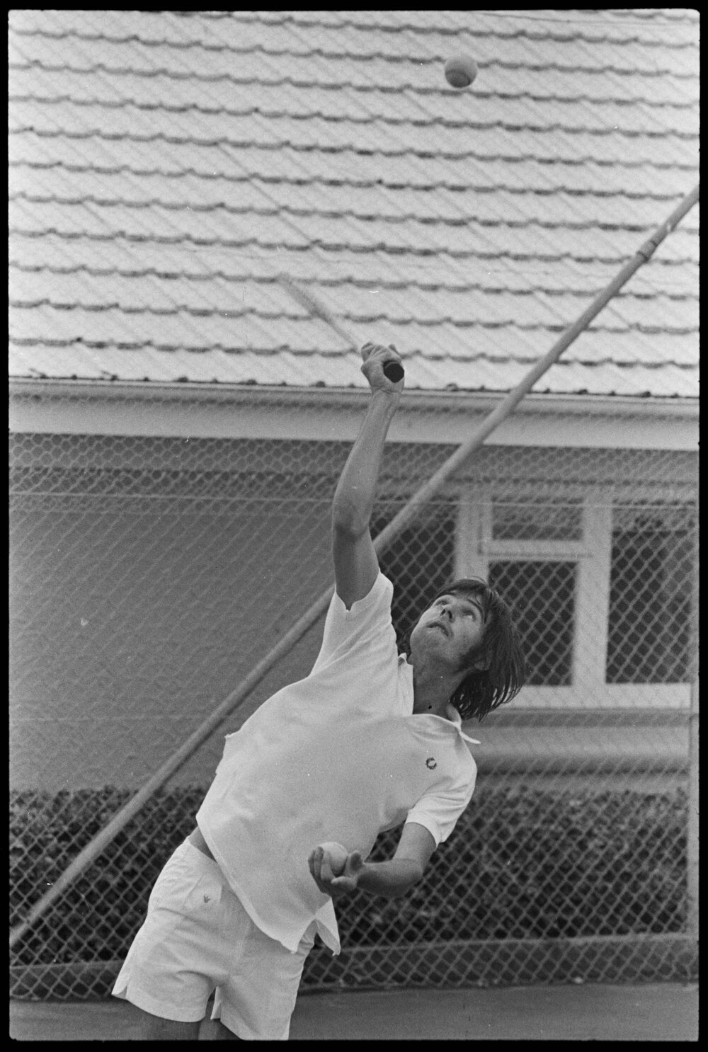 Date18 February 1972Reference Numberphoto gcc-19622DescriptionIan Dale in action at the Gate Pā Tennis Club championships. Published 18 February 1972.FormatNegativePhysical Description35mm black-and-white negative (1/3)Photographer/CreatorBay of Plenty Times