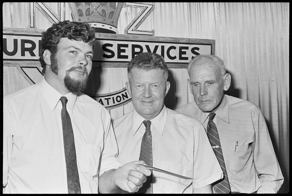 Date18 February 1972Reference Numberphoto gcc-19638DescriptionMr R. J. Mankelow of the Kaimai Youth Camp Society, receives a donation from the RSA vice-president, Mr K. J. Lawrie (right). Published 18 February 1972.FormatNegativePhysical Description35mm black-and-white negative (1/3)Photographer/CreatorBay of Plenty Times