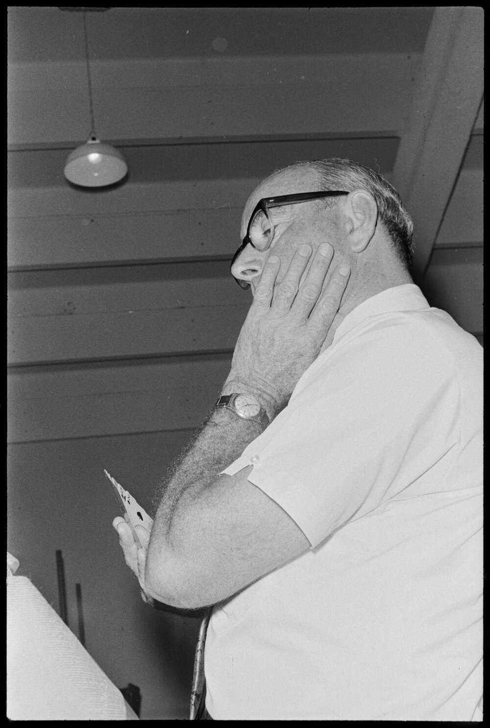 Date19 February 1972Reference Numberphoto gcc-19650DescriptionMr I. P. Turner of Whakatāne is part of the Tauranga Bridge Club's charity tournament at the Tauranga racecourse. Published 19 February 1972.FormatNegativePhysical Description35mm black-and-white negativePhotographer/CreatorBay of Plenty Times