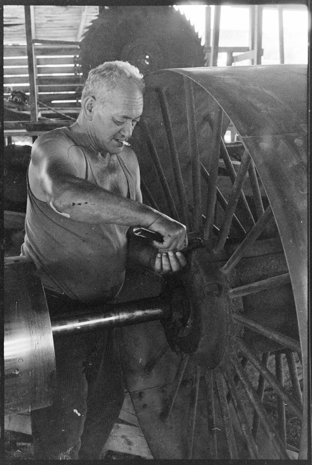 Date19 February 1972Reference Numberphoto gcc-19673DescriptionJack Cooney, of Te Puna, who has been commissioned to dismantle the Te Puna sawmill, once owned by the Frankham brothers. Published 19 February 1972.FormatNegativePhysical Description35mm black-and-white negative (5/10)Photographer/CreatorBay of Plenty Times