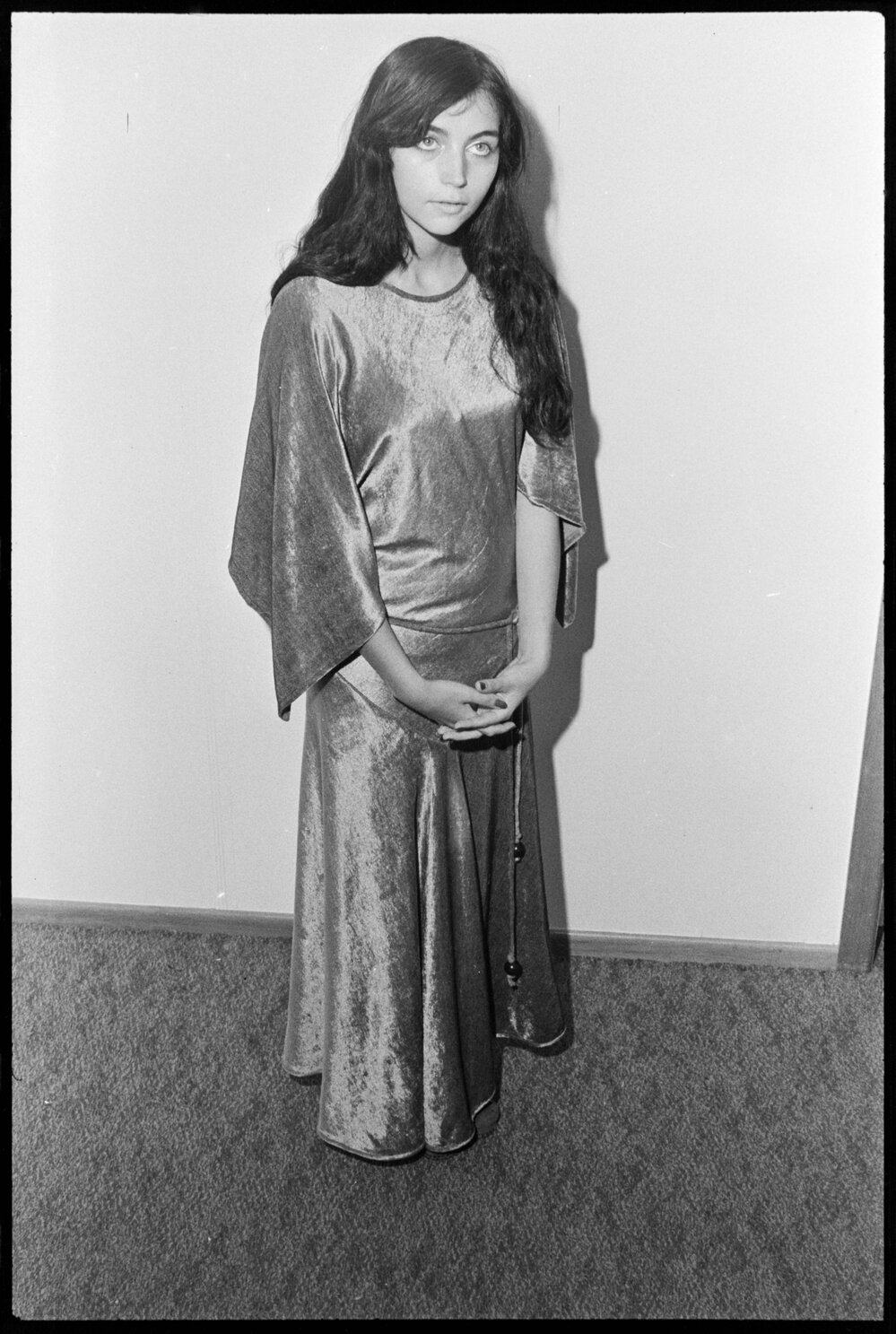 Date22 February 1972Reference Numberphoto gcc-19716DescriptionMarianick, of Noumea, models her demure outfit with "the air of ancient times with the low V waist". Published 22 February 1972.FormatNegativePhysical Description35mm black-and-white negative (1/6)Photographer/CreatorBay of Plenty Times