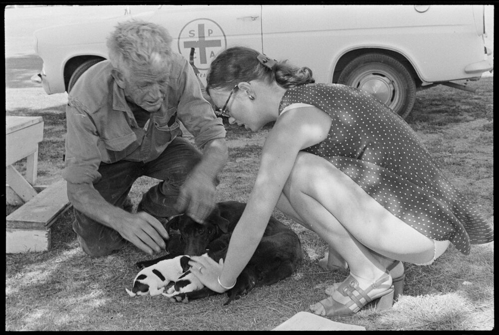 Date19 February 1972Reference Numberphoto gcc-19742DescriptionDes Smith from the SPCA leaves abandoned dog and puppies in the care of Mrs C. R. Day. Published 19 February 1972.FormatNegativePhysical Description35mm black-and-white negative (2/6)Photographer/CreatorBay of Plenty Times