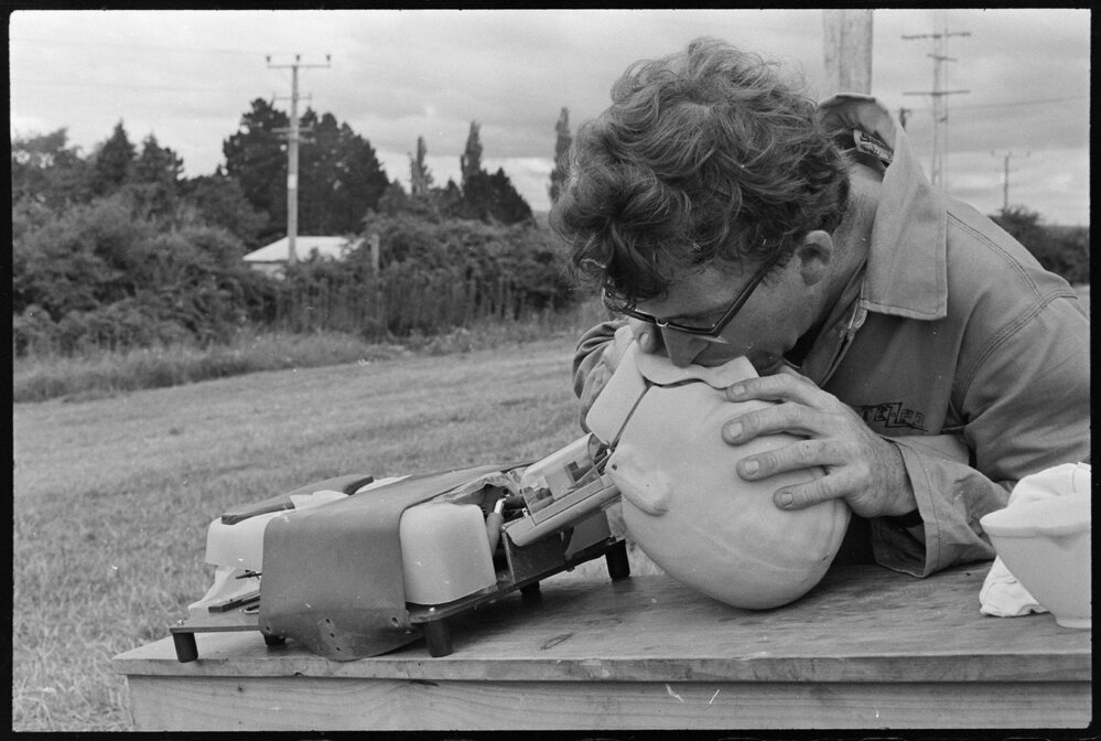 Date26 February 1972Reference Numberphoto gcc-19805DescriptionMr M. G. Turner, of the Tauranga Electric Power Board, inflates an artificial respiration dummy during annual safety competition for northern area power boards. Published 26 February 1972.FormatNegativePhysical Description35mm black-and-white negative (1/12)Photographer/CreatorBay of Plenty Times