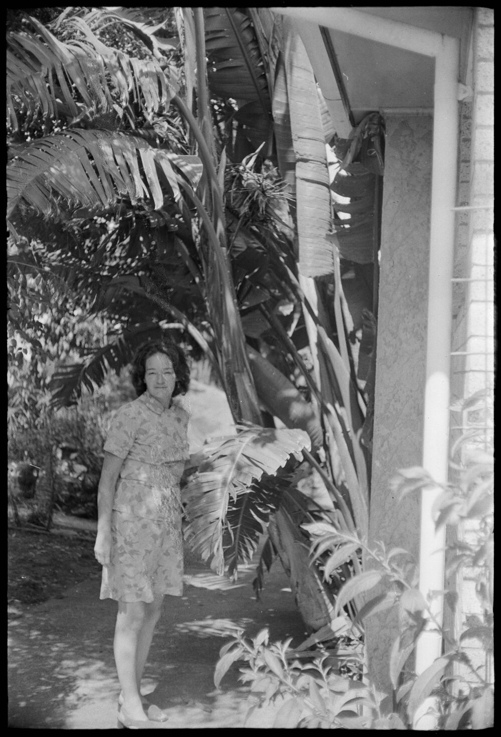 Date26 February 1972Reference Numberphoto gcc-19826DescriptionPhotograph of woman with palm trees outside building. Published 26 February 1972.FormatNegativePhysical Description35mm black-and-white negative (1/6)Photographer/CreatorBay of Plenty Times