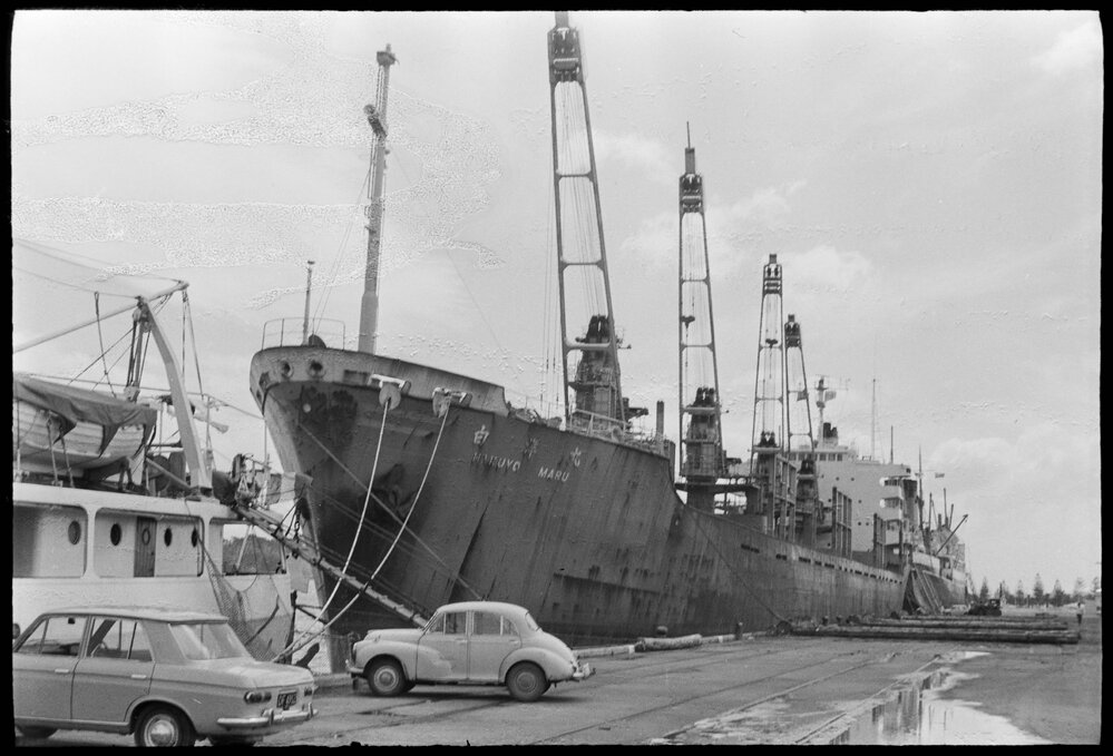 Date26 February 1972Reference Numberphoto gcc-19830DescriptionJapanese freighter Hakuyo Maru, on its' first visit to Mount Maunganui for the log run. Published 26 February 1972.FormatNegativePhysical Description35mm black-and-white negative (5/6)Photographer/CreatorBay of Plenty Times