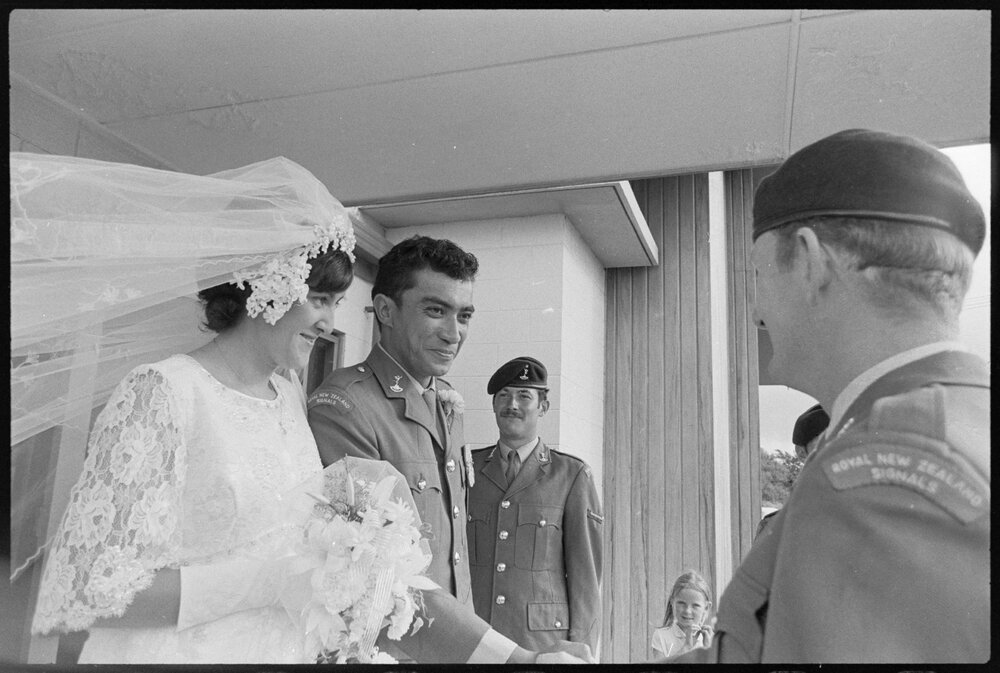 Date13 March 1972Reference Numberphoto gcc-19869DescriptionA Military wedding was held at the Mount Maunganui St Andrew's Church between Signalman, Joseph Chris Henry and Patricia May Jane. Published 13 March 1972.FormatNegativePhysical Description35mm black-and-white negative (7/9)Photographer/CreatorBay of Plenty Times