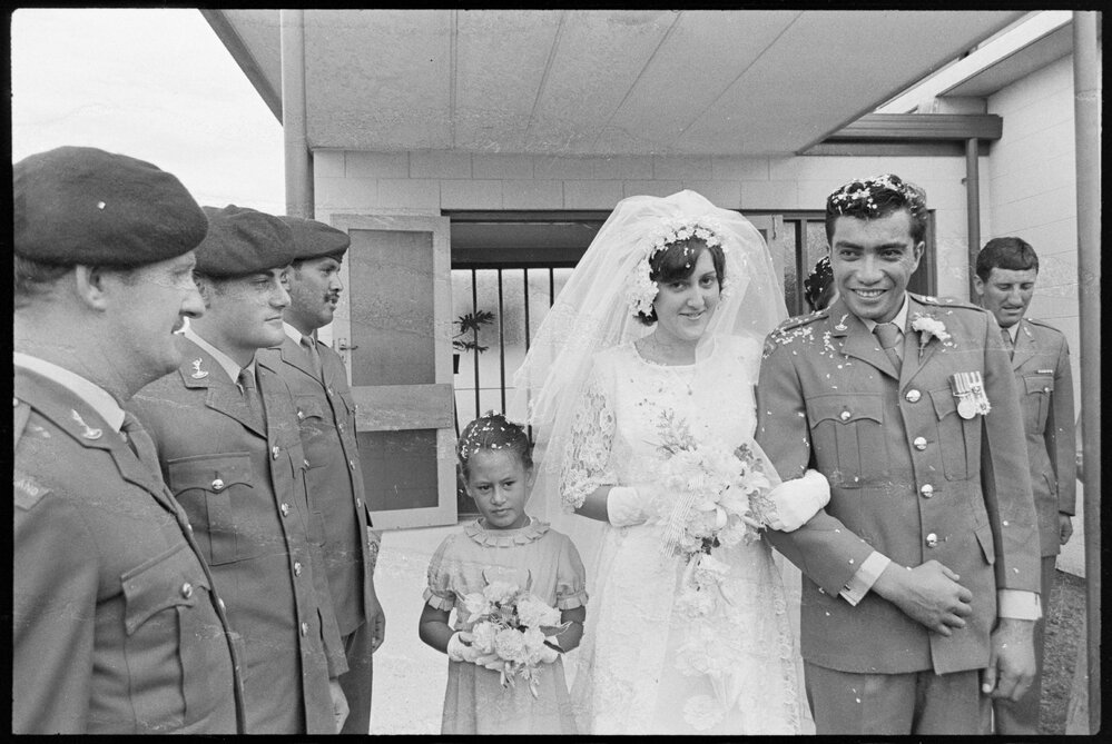 Date13 March 1972Reference Numberphoto gcc-19871DescriptionA Military wedding was held at the Mount Maunganui St Andrew's Church between Signalman, Joseph Chris Henry and Patricia May Jane. Published 13 March 1972.FormatNegativePhysical Description35mm black-and-white negative (9/9)Photographer/CreatorBay of Plenty Times