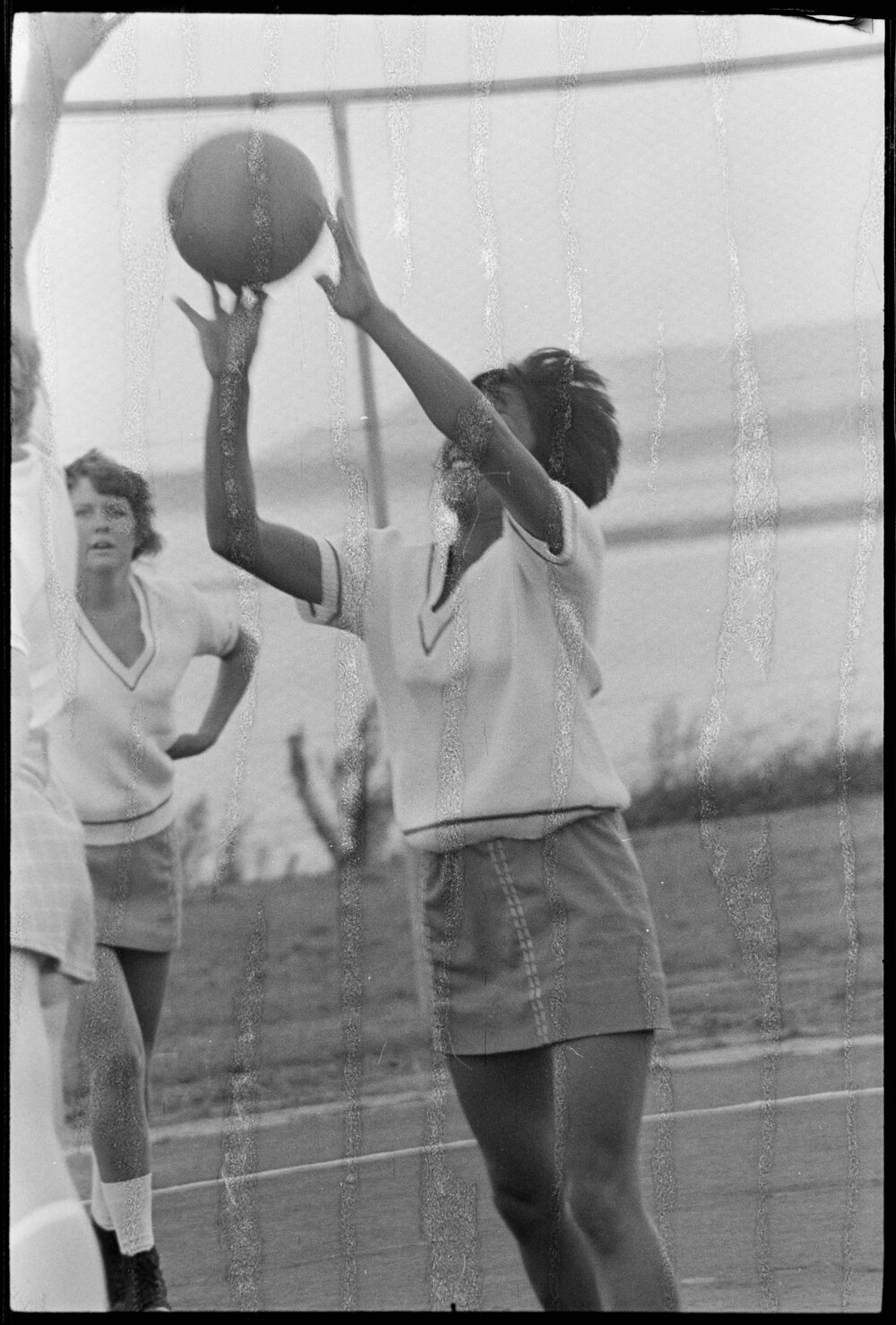 Date8 April 1972Reference Numberphoto gcc-19892DescriptionGame of netball between Blue Jays and Auto House at the Cliff Road netball courts, Tauranga. Published 8 April 1972.FormatNegativePhysical Description35mm black-and-white negative (3/6)Photographer/CreatorBay of Plenty Times