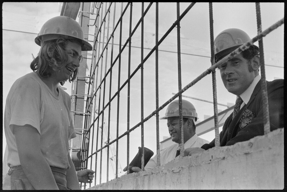 Date13 April 1972Reference Numberphoto gcc-19912DescriptionMP's visit construction site of new municipal building in Tauranga. Published 13 April 1972.FormatNegativePhysical Description35mm black-and-white negative (4/15)Photographer/CreatorBay of Plenty Times
