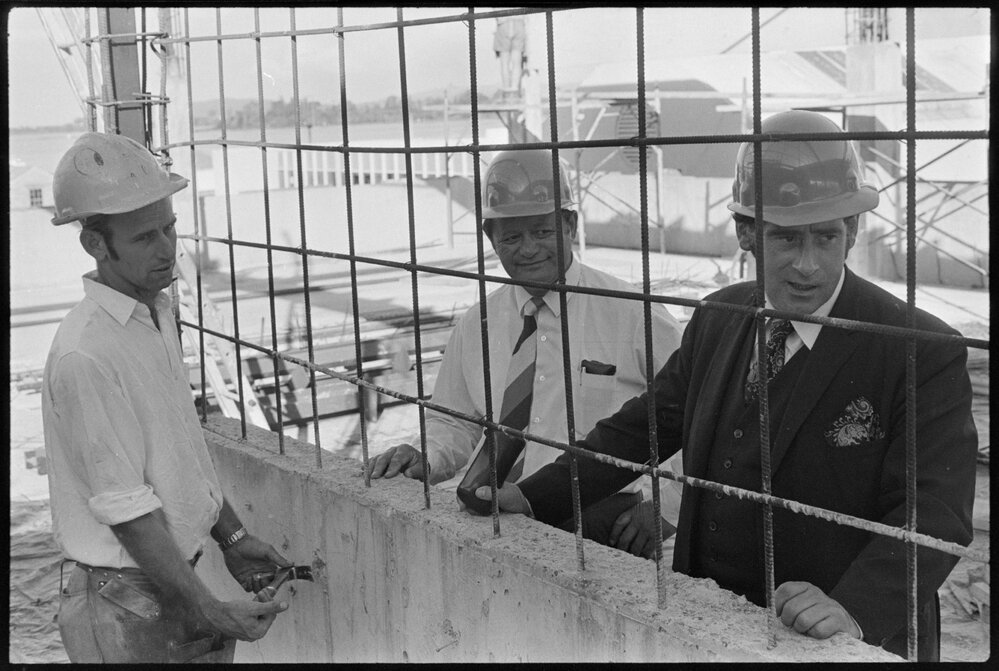 Date13 April 1972Reference Numberphoto gcc-19919DescriptionMP's visit construction site of new municipal building in Tauranga. Published 13 April 1972.FormatNegativePhysical Description35mm black-and-white negative (11/15)Photographer/CreatorBay of Plenty Times