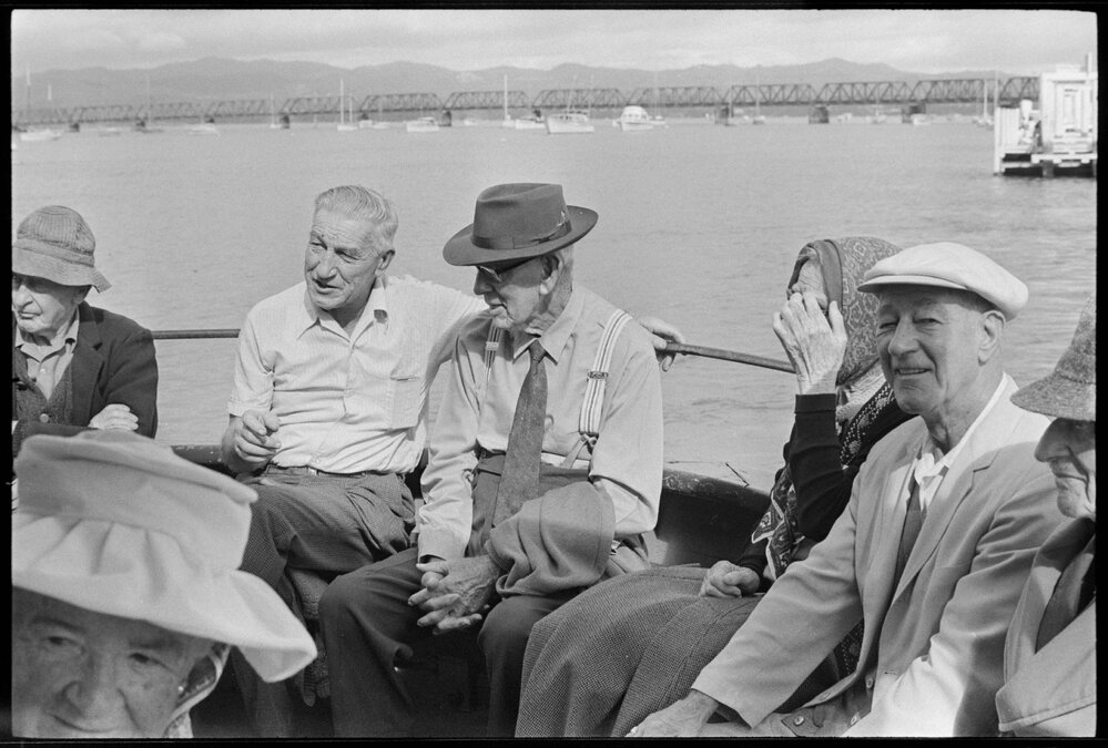 Date13 April 1972Reference Numberphoto gcc-19938DescriptionResidents from Melrose, Hodgson and Crathie homes were taken on a boat tour around Tauranga Harbour. Matapihi rail bridge in background. Published 13 April 1972.FormatNegativePhysical Description35mm black-and-white negative (2/3)Photographer/CreatorBay of Plenty Times