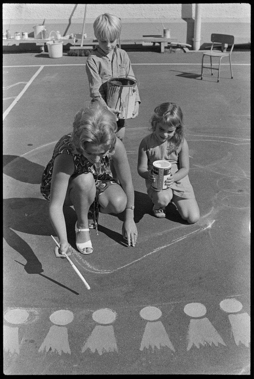 Date15 April 1972Reference Numberphoto gcc-19982DescriptionDianne Costello, a teacher at Tauranga Primary School, paints an elephant on the school playground with six-year-old Saen Harris and five-year-old Katherine Ashton. Published 15 April 1972.FormatNegativePhysical Description35mm black-and-white negative (1/3)Photographer/CreatorBay of Plenty Times