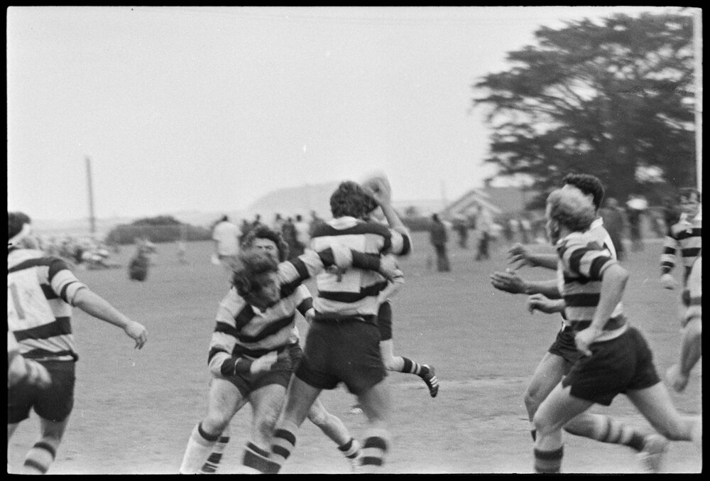 Date14 April 1972Reference Numberphoto gcc-20062DescriptionCadets versus Greerton in rugby match. Published 14 April 1972.FormatNegativePhysical Description35mm black-and-white negative (1/3)Photographer/CreatorBay of Plenty Times