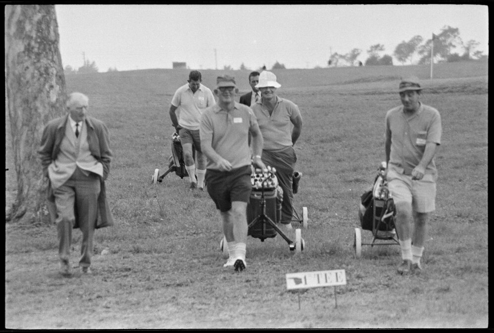 Date10 April 1972Reference Numberphoto gcc-20073DescriptionOpening day in the rain at Ōmanu Golf Club, in Mount Maunganui. Published 10 April 1972.FormatNegativePhysical Description35mm black-and-white negative (1/3)Photographer/CreatorBay of Plenty Times