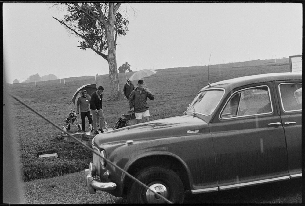Date10 April 1972Reference Numberphoto gcc-20075DescriptionOpening day in the rain at Ōmanu Golf Club, in Mount Maunganui. Published 10 April 1972.FormatNegativePhysical Description35mm black-and-white negative (3/3)Photographer/CreatorBay of Plenty Times